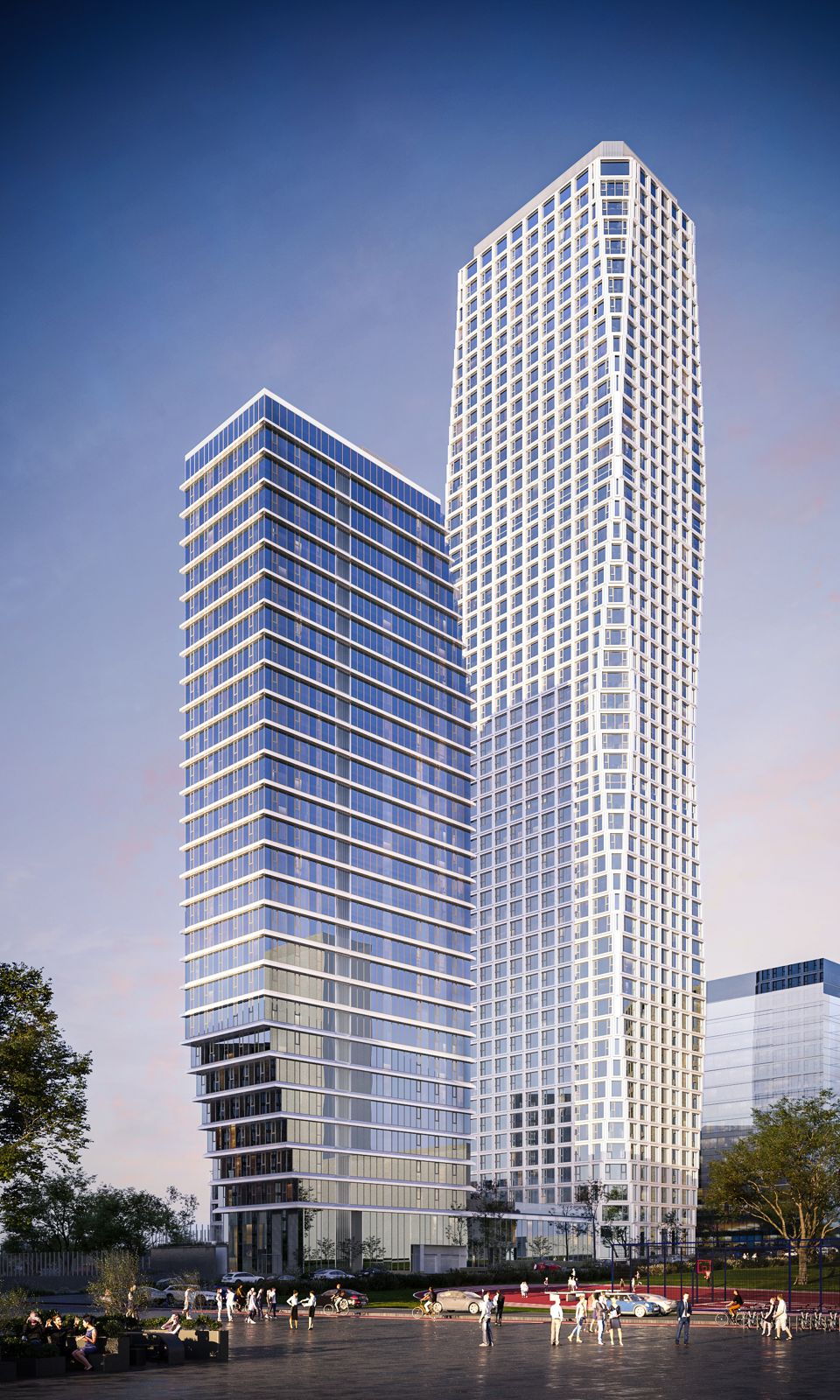Здания формируют единую гармоничную структуру с корпусами первой очереди проекта. В фасадной архитектуре использована панорамная модульная система — современная конструкция с крупными остекленными модулями, формирующая ритмичный и технологичный облик зданий. Такое решение обеспечивает максимальный приток естественного света и открывает захватывающие виды на город — уникальные, неповторимые, как и сам проект.Цокольная часть объектов будет оформлена плитами из керамогранита.